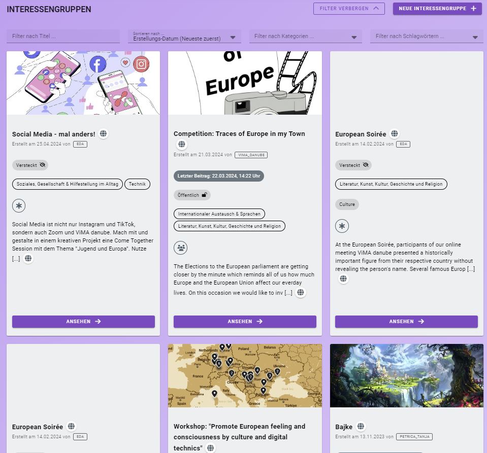Bei ViMA können Sie Menschen mit gleichen Interessen kennenlernen, über spannende Themen diskutieren, sich an internationalen Projekten beteiligen und vieles andere mehr!